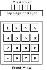 To interface the keypad to the PORTC of the STK500 development board, we set it up as shown below: