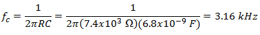 Figure 3 shows the circuit we built onto the solder board. This circuit is divided in four stages and is used to produce a reliable and sensitive acoustic waveform. First, an electret microphone was put in series with a 2k? resistor. The microphone can be modeled as a variable resistor dependant on sound and pressure waves. Thus, the voltage drop across this resistor will depend on the sound the microphone is hearing. After the input sound at the microphone has been transformed to a fluctuating analog voltage, the signal is passed through a high-pass filter which filters out sound lower than 3 kHz. This cutoff frequency was chosen to filter out common ambient sounds and because the sound of a fingernail scratching a surface is above 3 kHz. The capacitor of this filter was chosen to be 6.8 nF and the resistor was 7.4 k? to achieve a cutoff frequency of approximately 3 kHz: