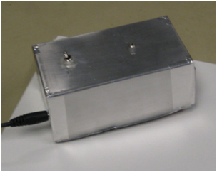 Our hardware consisted of a fairly small circuit on a solder board, a microcontroller circuit, and a microphone inside a stethoscope. We packaged all of this into a small aluminum box which we made from sheet metal. Holes for connecters and switches were then cut out. The microphone is attached to standoffs which "push" the stethoscope on the surface which the box is placed on. Figure 2 below shows all our hardware and an image of our complete packaged project.