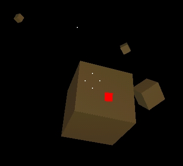 The game engine was designed with speed in mind. The simulation of flying trhough a volume had to be smooth. Thus, there I decided to use cubes as a starting point for the asteroids. This way there would be a low number of polygons, and explosions would be simpler. The next design consideration was how to make the physics of the engine easy to update. This lead to the storage of all possible information in such a way that everything could be updated additively. Not only were the velocities of the objects updated in an additive vector format, but so were the Up, View, and Right vectors for the ships camera when rotations are done. Lastly the model for obtaining user input is a combination of the push/pull paradigm. I decided to use a mostly pull system, whereby the user interface is polled for the states of keys on the keyboard when the information is needed for calculations. However, it would be a noticeable problem if the user happened to press the fire key when the computer wasn't polling and thus not get a shot fired. Thus, whenver a fire button is pressed, a windows message is "pushed" onto the message queue saying that the key has been pressed, gauranteeing that a shot will be fired.