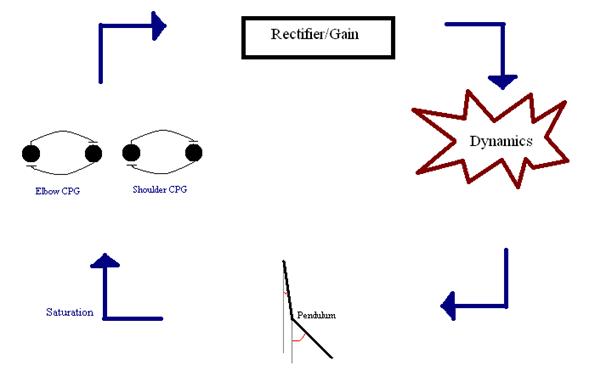 Figure 3: Flow diagram for model system—two CPG’s and a double pendulum