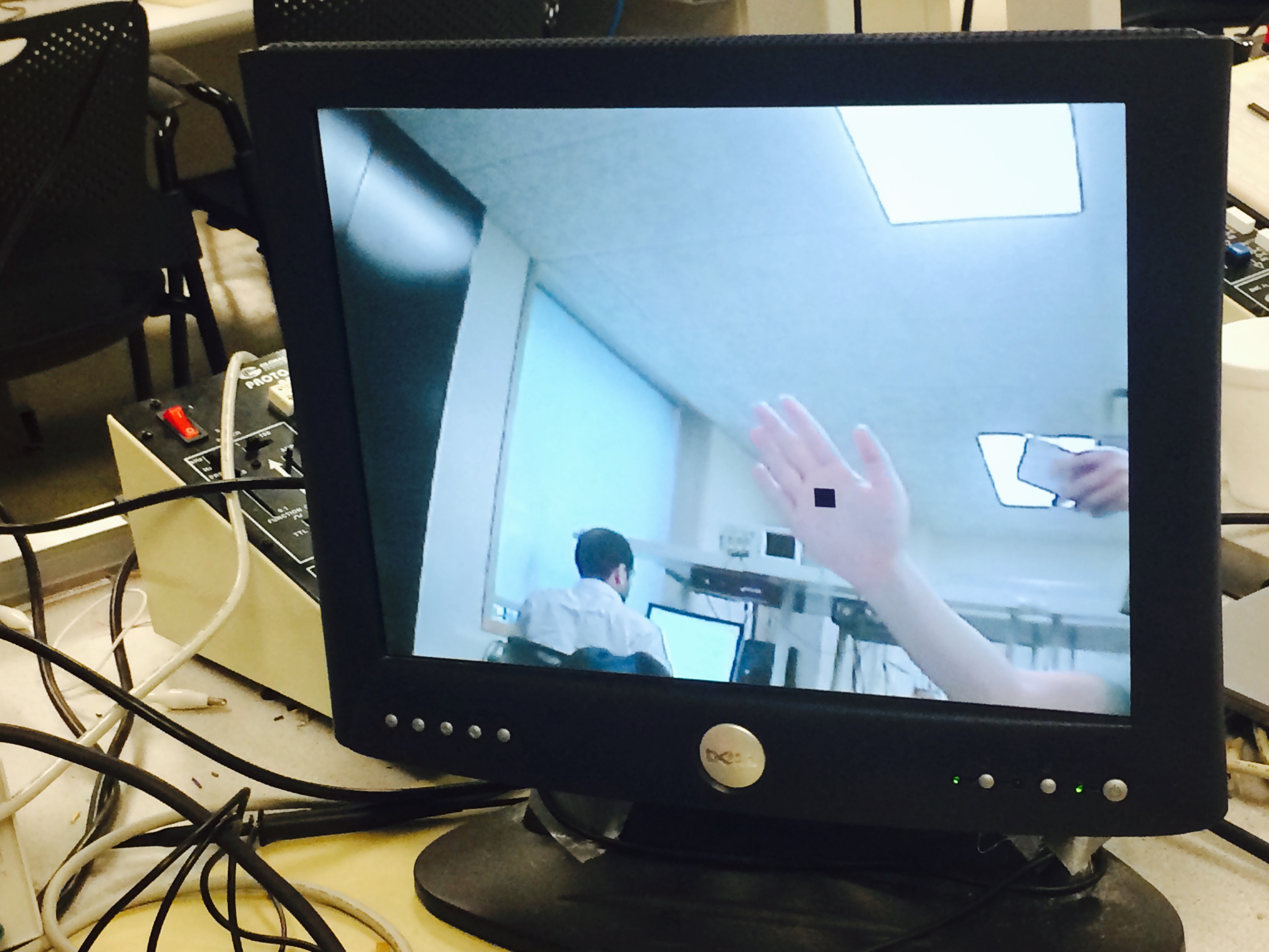 The second mode is the camera image with a cursor following the moving hand. Cause the cursor needed to be trained at reset, this image could help to make sure the hand position was correctly calculated.